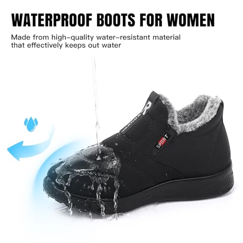 • Water Resistant Boots: The upper of the snow boots is made of water resistant, keeping their feet dry in wet and snowy conditions. Winter boots are lightweight, making it easy for you to work everyday. Flat women snow shoes, lightweight winter shoes, woman slip on trendy boots, resistant boots woman, slip on comfy booties.