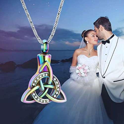 Yinplsmemory Cremation Jewelry Celtic Knot Urn Necklace for Ashes Stainless Steel Triangle Vintage Crystal Circle Ashes Keepsake Necklace 5