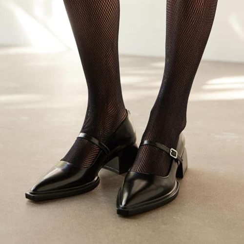 Mary Jane Pumps for Women,Ballet Shoes with Pointed Toe Chunky Heel Buckle Strap Pumps 5