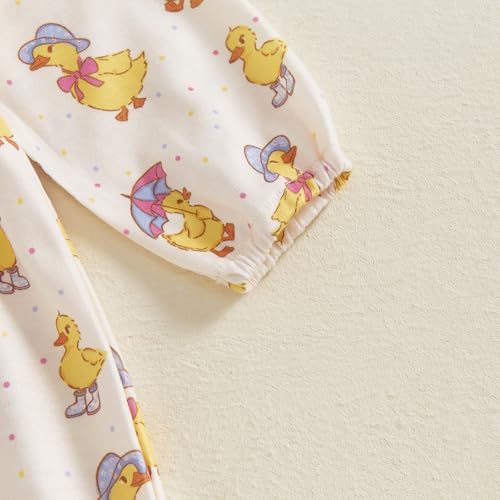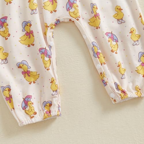 Newborn Baby Girl Easter Outfit Bunny Duck Print Romper Ruffle Long Sleeve Jumpsuit with Headband Cute Clothes 6