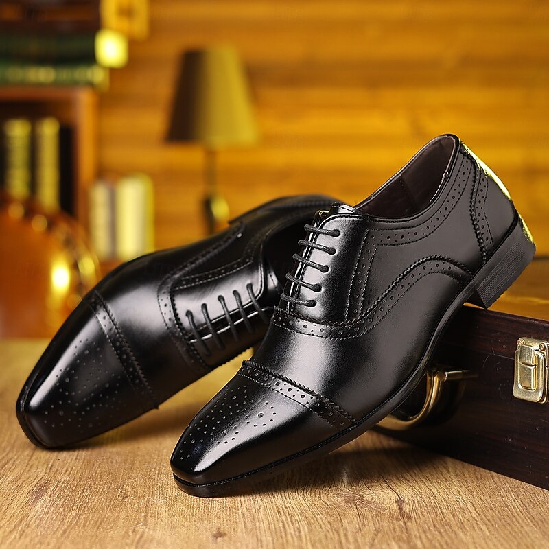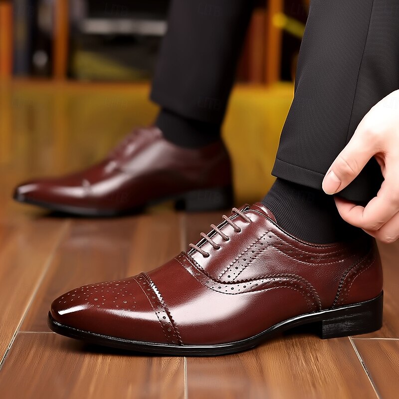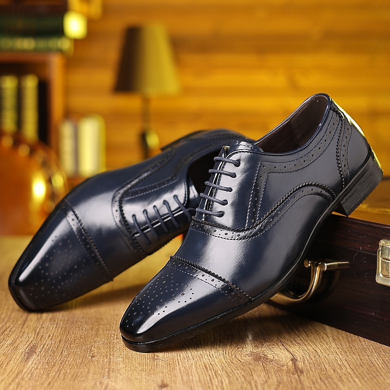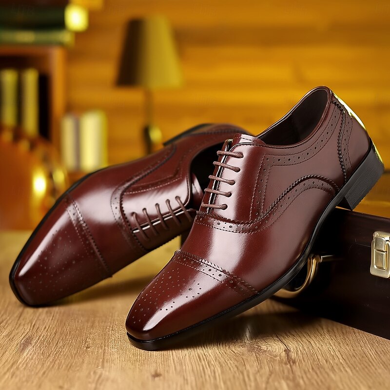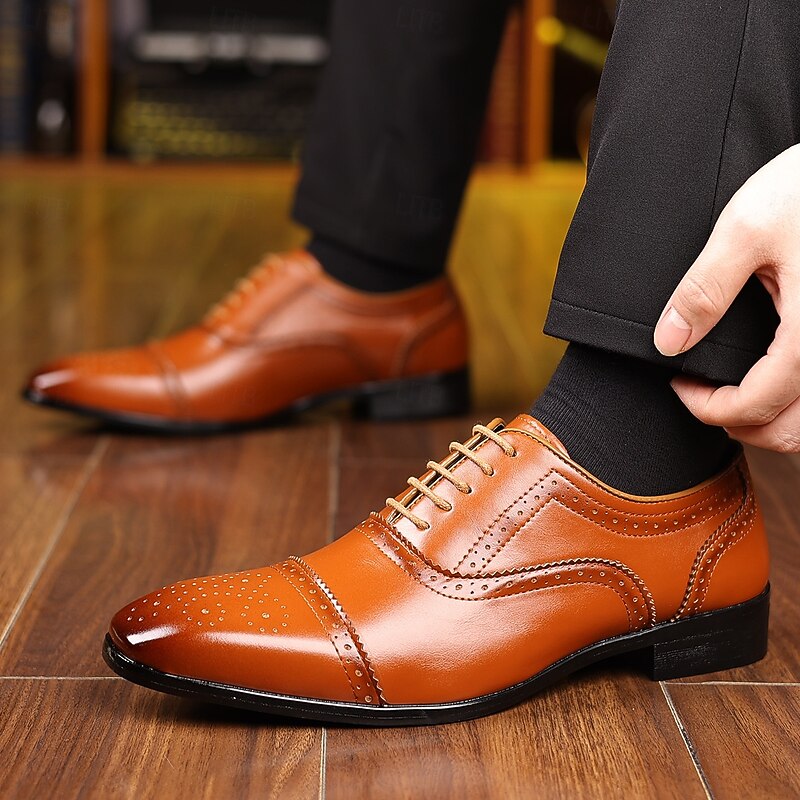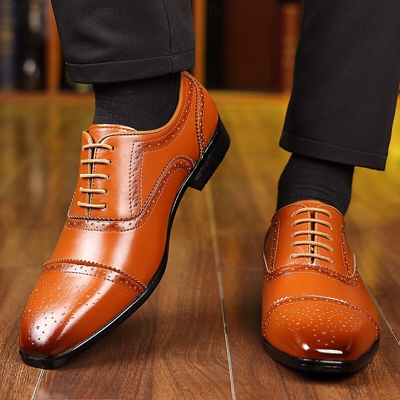 Men's Two-Tone Faux Leather Oxford Shoes - Classic Lace-Up Brogue Dress Shoes with Wingtip Design for Formal and Business Wear 24