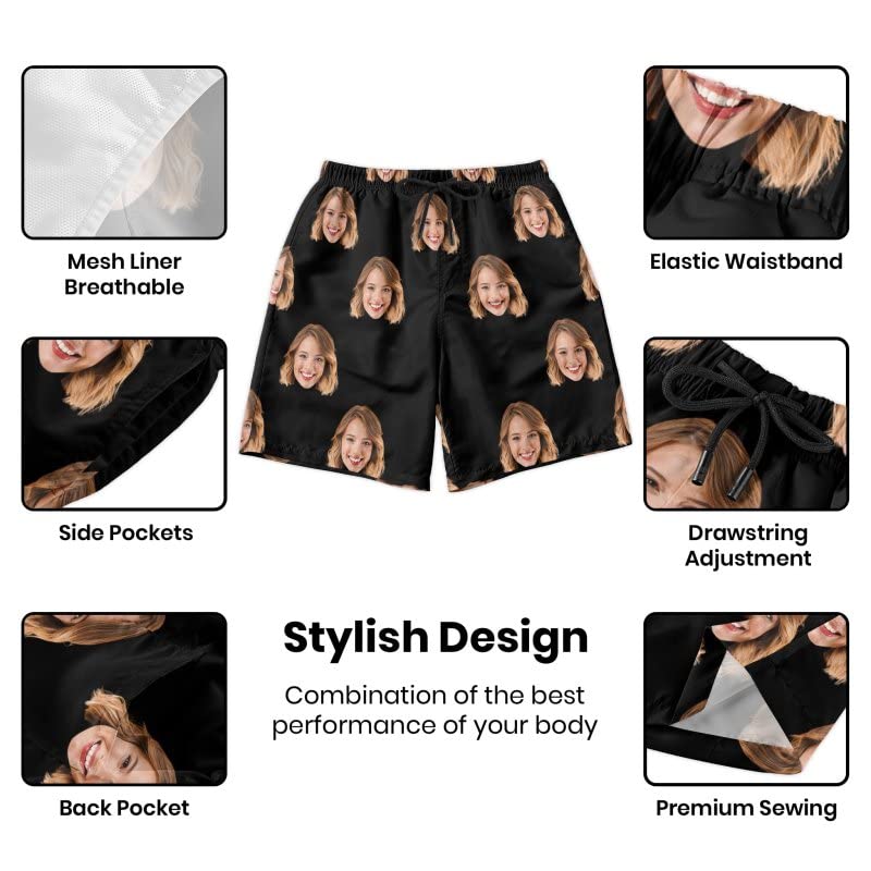 DIYKST Personalized Photos Swim Short with Faces Personalized Gifts for Boyfriendd Swim Trunks Picture Beach Board Short 3