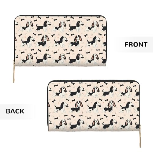 Leather Thin Slim Wallets for Women Men - Fashion Cartoon Cute Dog Print Card Wallet Holder with Zipper 1