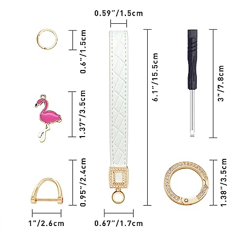 • Package includes:1 x Leather Keychain,1 Bling Key Ring,1 x Anti-Lost D Ring,5 x Key Ring,1 x Flamingo pendant,1 x Screwdriver (help you open the D-ring).