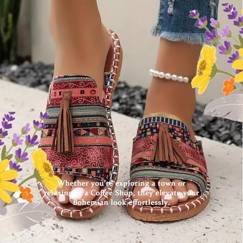 Lorraines Casual Orthopedic Sandals Boho, Women's Rainbow Colorful Flat Sandals, Boho Sandals for Women 2025, with Tassel Decoration 2