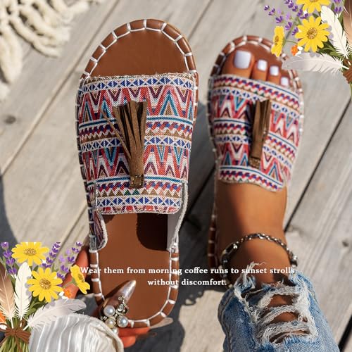 Lorraines Casual Orthopedic Sandals Boho, Women's Rainbow Colorful Flat Sandals, Boho Sandals for Women 2025, with Tassel Decoration 6