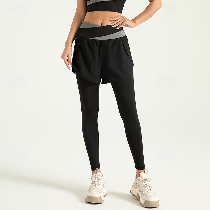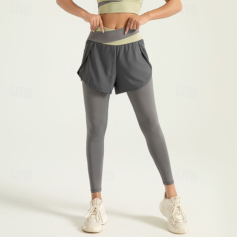 More information about Women's Yoga Pants Yoga Leggings 2 in 1 Butt Lift Tummy Control High Waist Pilates Gym Workout Workout Tights Bottoms Solid Color Navy Light Brown Black Spandex Fall Sports Activewear Stretchy Slim