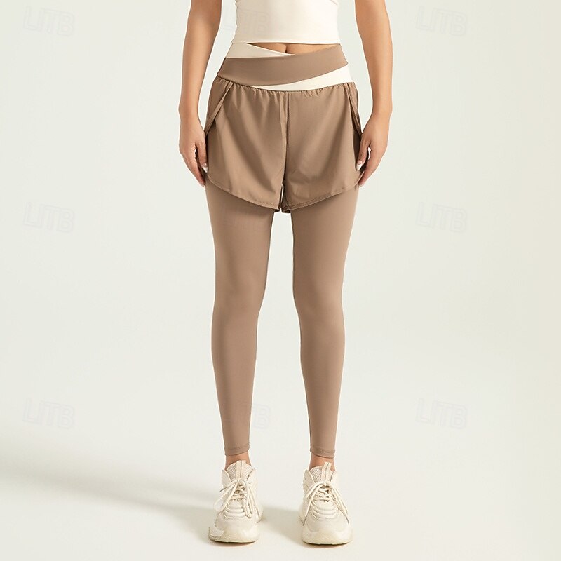 Women's Yoga Pants Yoga Leggings 2 in 1 Butt Lift Tummy Control High Waist Pilates Gym Workout Workout Tights Bottoms Solid Color Navy Light Brown Black Spandex Fall Sports Activewear Stretchy Slim 1