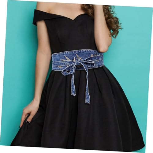NOLITOY Vintage Denim Wide Waist Corset Belt for Women Embroidered Tie Waistband for Dresses Stylish Retro Casual Fashion Accessory 1