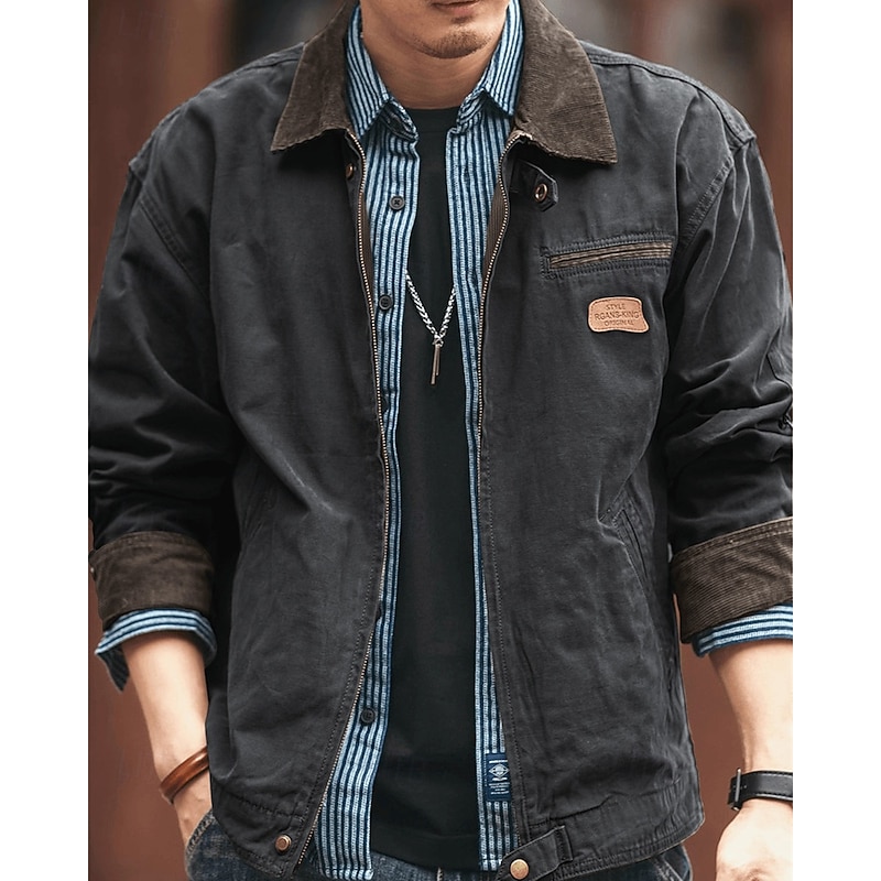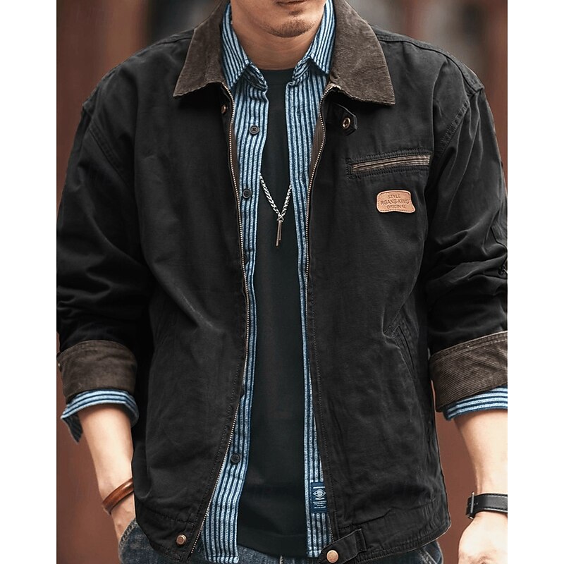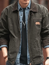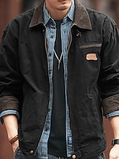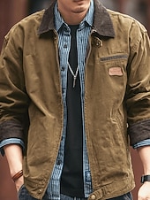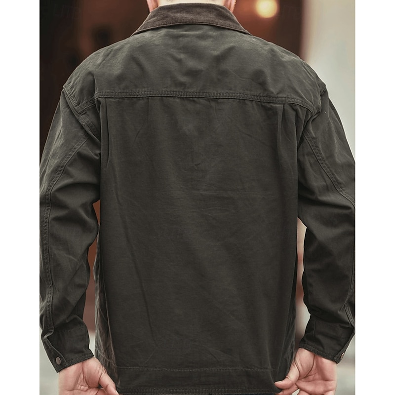 More information about Men's Lightweight Jacket Cargo Jacket Casual Jacket Vacation Daily Wearproof Pocket Fall Winter Plain Fashion Classic Lapel Regular Black Brown Army Green Dark Gray Jacket