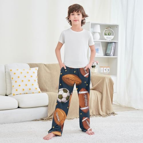 Football Starry Boys Long Pants Soft Trousers Elastic Waist Kids Lounge Bottoms with Pockets S-XL 1