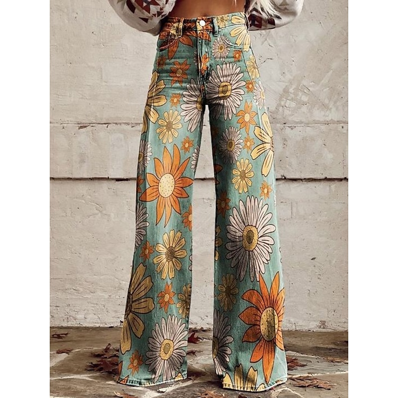Retro Vintage Boho 1970s Pants Wide Legged Pants Hippie Disco High Waist Floral Faux Jeans Style Fancy Dress Women's Halloween Carnival Music Festival Pride Parade Retro Theme Party Adults' Pants 1