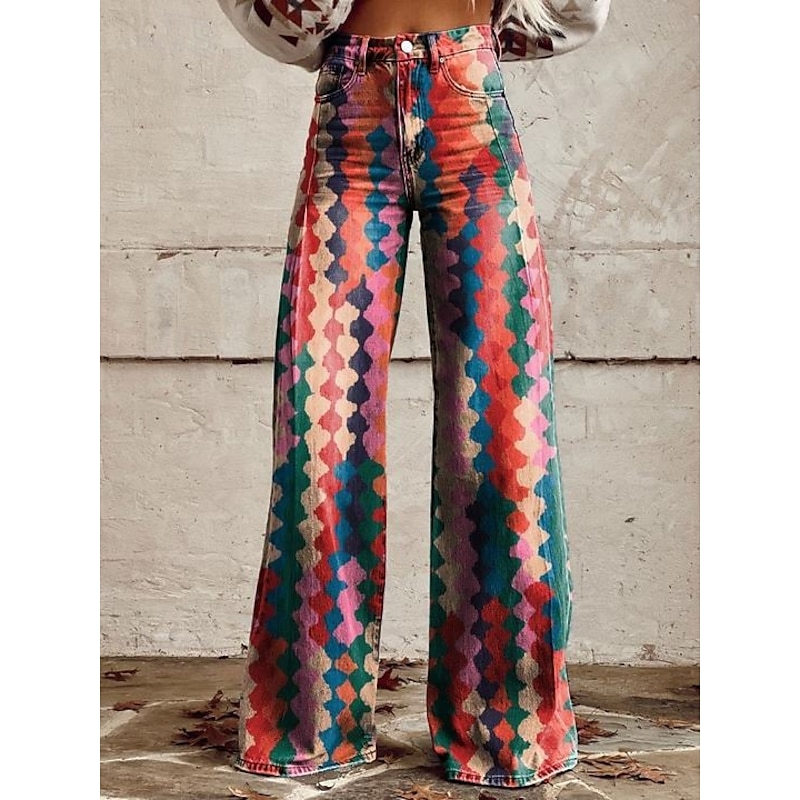 Retro Vintage Boho 1970s Pants Wide Legged Pants Hippie Disco High Waist Floral Faux Jeans Style Fancy Dress Women's Halloween Carnival Music Festival Pride Parade Retro Theme Party Adults' Pants 7