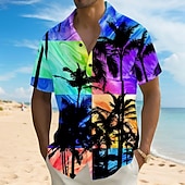 More information about Men's Coconut Tree Patchwork Tropical Plants Shirt Summer Hawaiian Shirt Button Up Shirt Short Sleeve Hawaiian Vacation Holiday Beach Wear Summer Turndown 3D Print Collared Shirts Front One Pocket