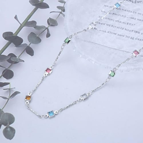 HOT ! Vintage Colorful Crystal Necklace Multi Color Rhinestone Choker Necklace Multi Crystal Baguette Necklace Tiny Cz Gemstone Station Necklace Jewelry for Women