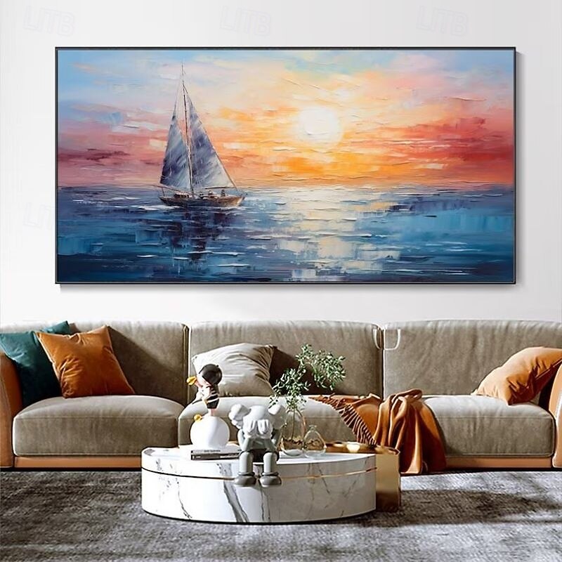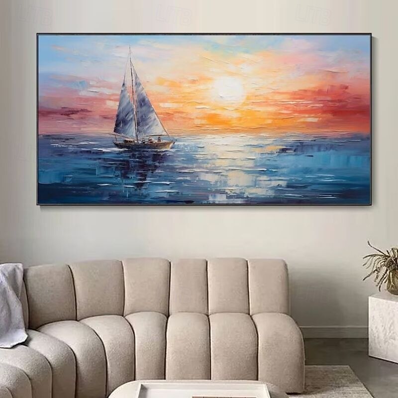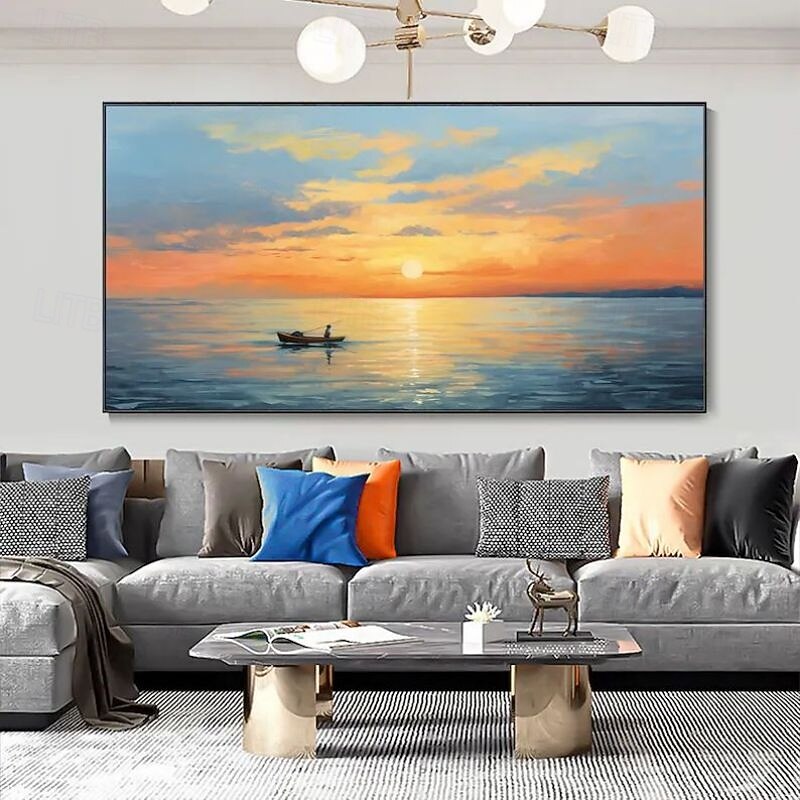 $92.99 - Hand-Painted Artwork Serene Sunset Seascape Canvas Oil Painting Calm Lake With Boat Abstract Sky Mural Living Room Home Decor Housewarming Gift Rolled Frameless Unstretched Painting 2025. Shop for cheap Landscape Paintings online? Buy at lightinthebox.com on sale today!