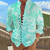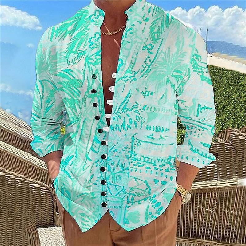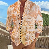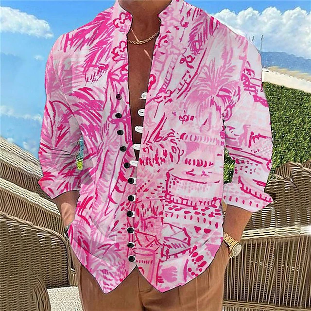 More information about Men's Palm Tree Tropical Plants Summer Hawaiian Shirt Aloha Shirt Printed Shirts Long Sleeve Shirt Standing Collar Hawaiian Resort Outdoor Vacation Daily Wear Pink Blue Orange S M L