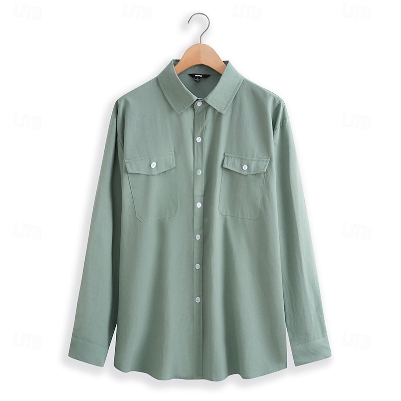 Men's Shirt Linen Shirt Summer Shirt Button Up Shirt Solid Color Business White Green Khaki Light Blue Long Sleeve Fold-over Collar Clothing Apparel Pocket 3