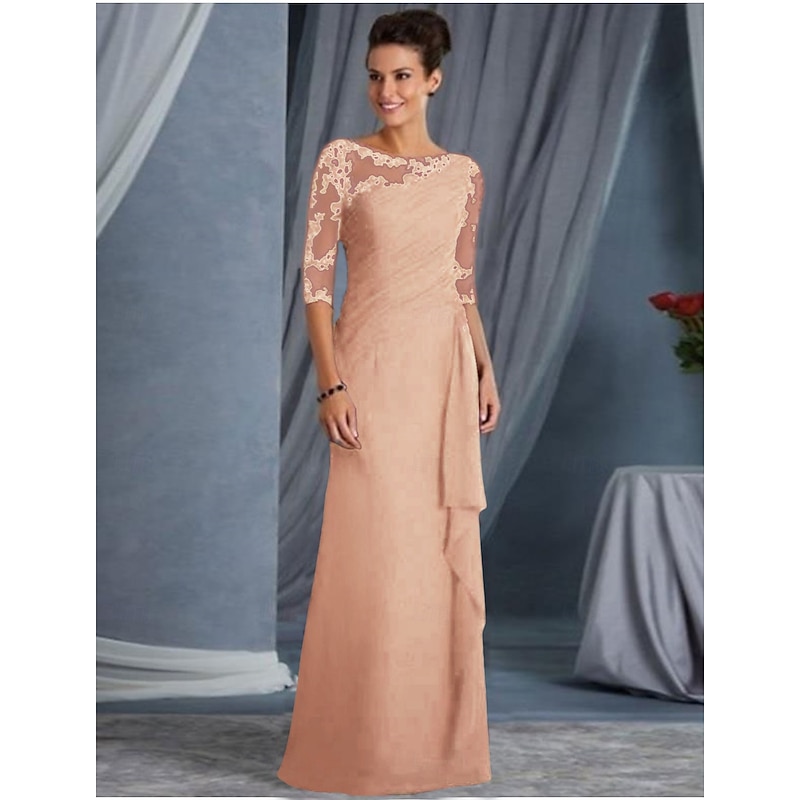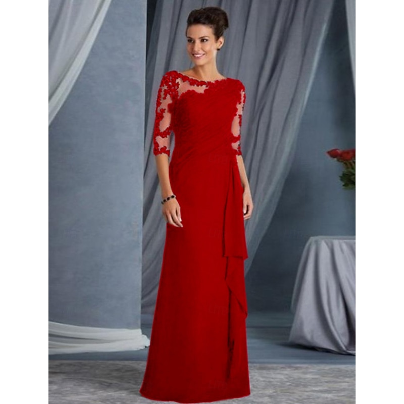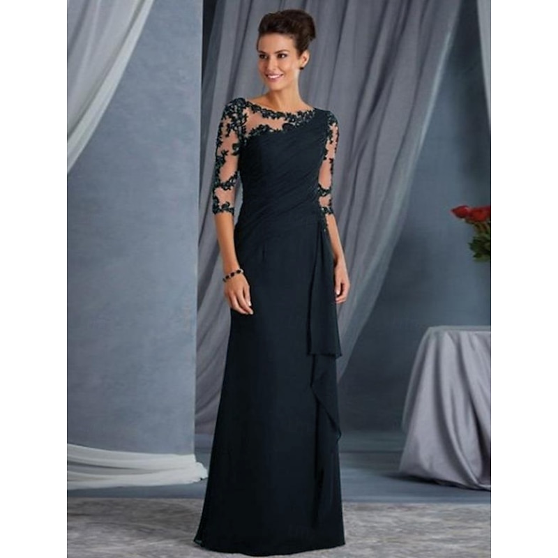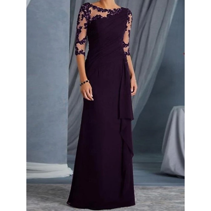 More information about Sheath Mother of the Bride Evening Gown Elegant Dress Formal Evening Floor Length Half Sleeve Jewel Neck Fall Wedding Guest Lace with Appliques dress to impress