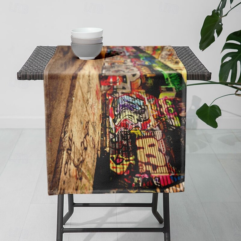 $11.49 - 1PC Street Graffiti Table Runner Table Flag – Digital Printed Rectangular Tablecloth for Restaurant, Banquet, Party, Cafe Decoration – 33x180cm (13x70.5in) 2025. Shop for cheap Tablecloth online? Buy at lightinthebox.com on sale today!