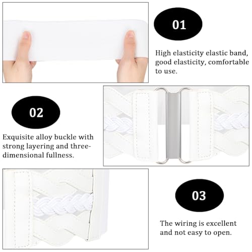 • Imitation Leather Material: The white elastic belt is made of high quality imitation leather, which is comfortable to wear, strong, not easy to break or fade, and light weight