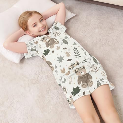 ALAZA Boho Bear Leaf Blossom Pajamas Satin Pajama Set Short Sleeve Button Down Sleepwear 3