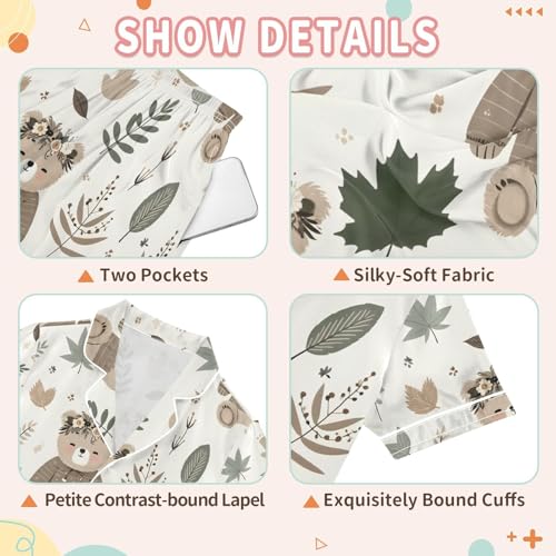ALAZA Boho Bear Leaf Blossom Pajamas Satin Pajama Set Short Sleeve Button Down Sleepwear 6
