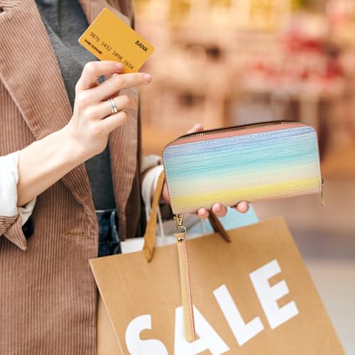 Clutch Wallet for Women, Gradient Color Multi Slot Women's Wallet with Double Zippers and Detachable Wristband 6