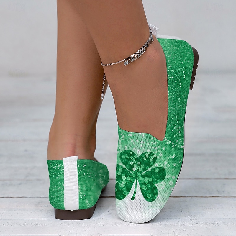 Women's Breathable Gradient Green Slip-On Flats with Clover Printed Design Perfect for Celebrate St. Patrick's Day 5