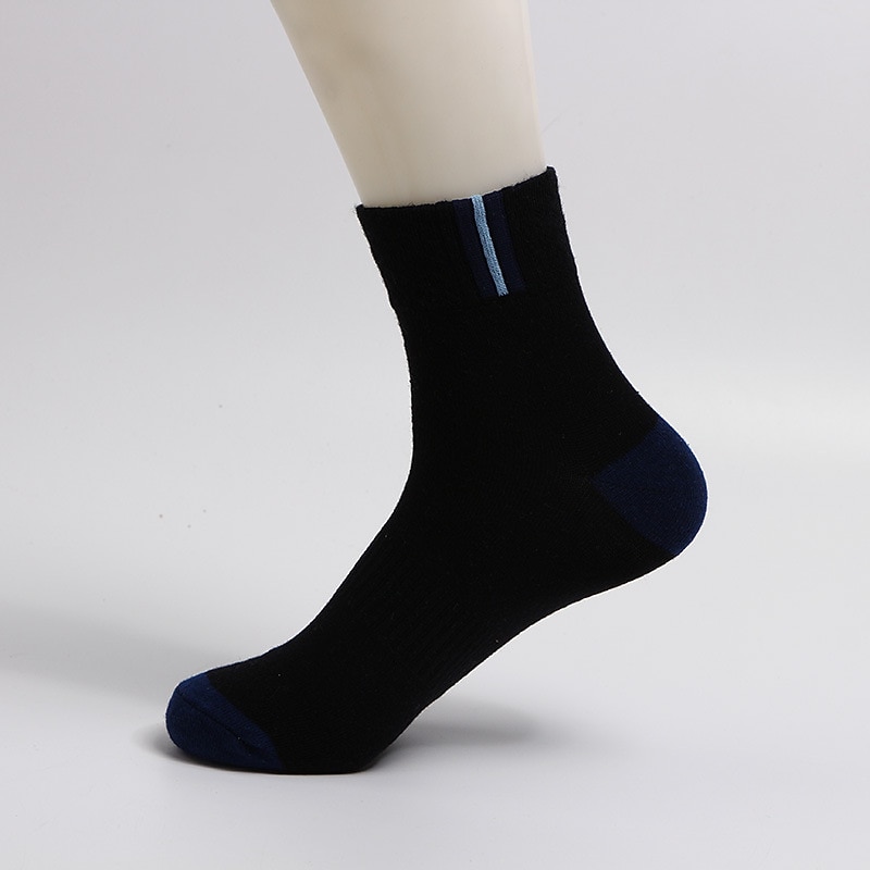 Highlights [Fabric] Crafted from a high-quality blend of 95% cotton and polyester, these socks offer exceptional comfort and breathability, making them an ideal choice for any season, including spring, fall, winter, and summer. The fabric ensures a soft touch and maintains its shape even after multiple washes. [Fit] These crew-length socks provide optimal coverage and a snug fit around the ankle, ensuring comfort for all-day wear. The stretchy elasticity accommodates various foot sizes, offering flexibility and support. [Design Highlights] Each pair features a striking color block design, including combinations such as black with blue stripes, white with yellow stripes, and gray with maroon accents. These fashion-forward patterns are crafted to add a touch of style to any outfit. [Occasions] Perfect for daily wear, vacations, and weekends, these socks cater to both casual and athletic use, providing a versatile addition to any wardrobe. Their stylish design and practical functionality make them suitable for a wide range of activities and settings. [Size Range] Designed to fit most sizes comfortably, these socks come in a one-size-fits-all option, ensuring a great fit for a wide audience. The medium thickness and stretchy material cater to a variety of foot shapes and sizes.