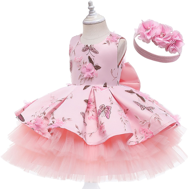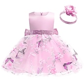 More information about Kids Girls' Dress Floral Butterfly Sleeveless Birthday Daily Lace Ruched Mesh Cute Princess Cotton Midi Floral Embroidery Dress A Line Dress Tulle Dress Summer Fall 2-8 Years Pastel Pink Pink Purple
