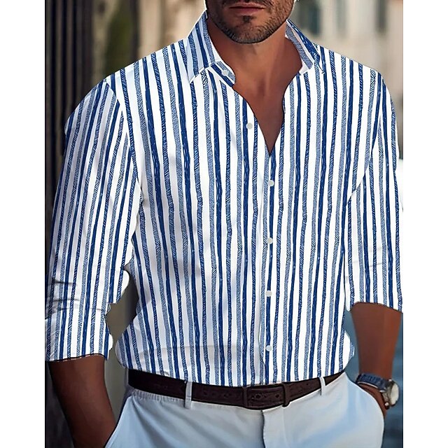 Men's Casual Shirt Beach Shirt Button Up Shirt Black Yellow Wine Red Blue Long Sleeve Stripes and Plaid Lapel Vacation Hawaiian Button-Down Clothing Apparel Polyester Fashion Casual Comfortable 7