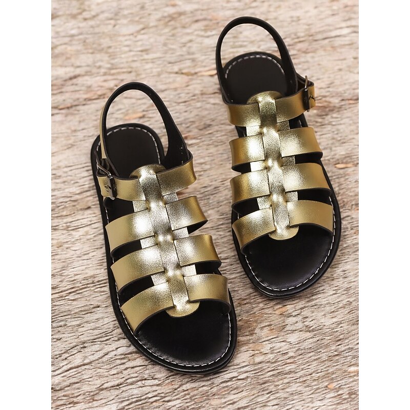 HOT ! Women's Metallic Gold Gladiator Sandals – Comfortable Flat Buckle Strap Summer Shoes, Stylish Open-Toe Design for Casual Outings, Beach Vacations, and Festivals
