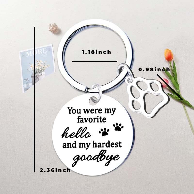 • 【Cat Memorial Gift for Loss of Dog Pat】This dog key chain enduring love and bond between a pet owner and their departed companion, the you were my favorite hello and my hardest goodbye message on the pets keychain, serving as a reminder of the ever happiness that pets bring into our lives, cat dog memorial gift for loss of dog cat, animal dog remembrance gifts for loss of dog pets