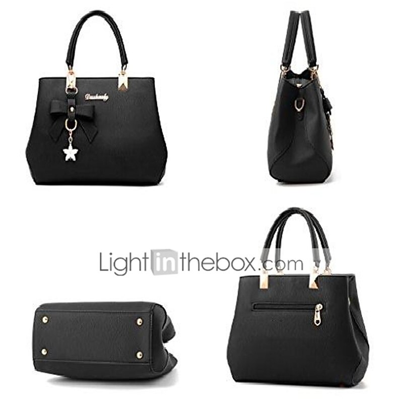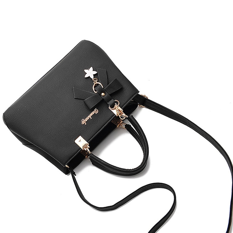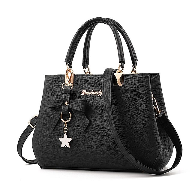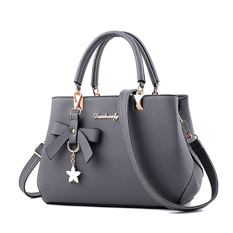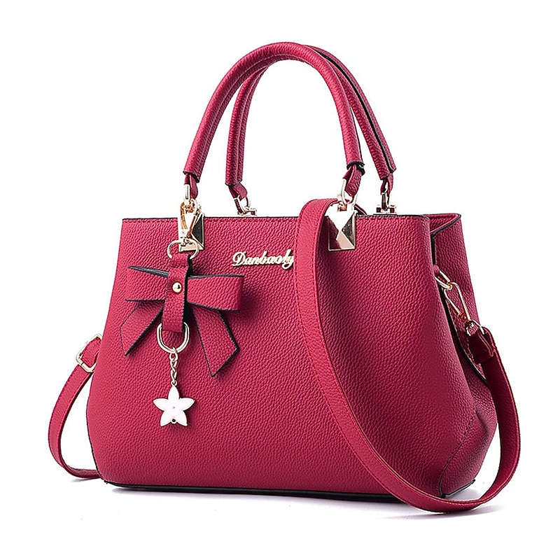 HOT ! Women's Faux Leather Top Handle Handbag with Bow Charm, Elegant Structured Satchel Shoulder Bag for Office, Shopping and Daily Use