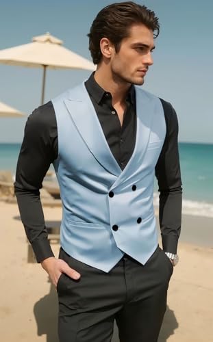 • 【Product Features】Men's slim fit vest is designed with peak lapels, Double breasted suit vest, very fashionable, with adjustable buttons on the back of the vest