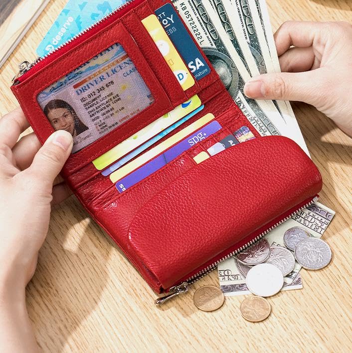Unisex Pebble Leather Wallet, Small Wallets for Women, Women's Genuine Leather Coin Purse with Credit Card Holder, Coin Holder & Cash Slots, Genuine Leather Wallet for Women (Red) 5