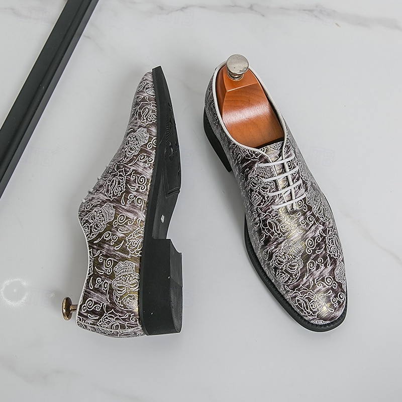 $46.99 - Men's Gothic Lace-Up Oxford Shoes – Metallic Silver Pattern with Mask Motif, Vintage Punk Style Dress Shoes for Parties, Halloween and Stage Performances 2025. Shop for cheap Shoes For Men online? Buy at lightinthebox.com on sale today!
