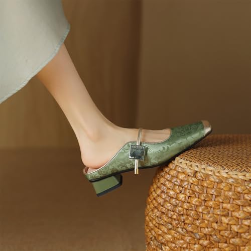 HOT ! Women's Square Cap Closed Toe Slip-On Embroidery Pumps Low Block Heel Slide Hook & Loop Fastener Mules Classic Work Office Church Comfort Shoes Dress Party Shopping Dating Sandals