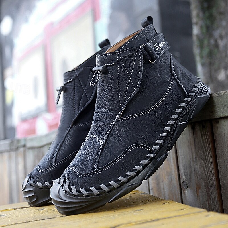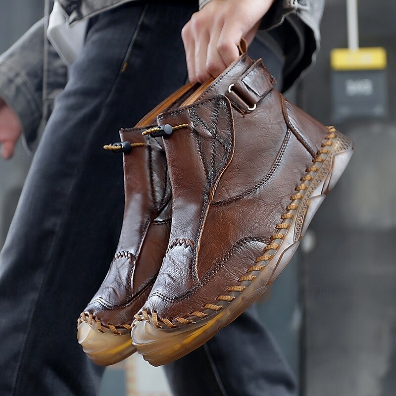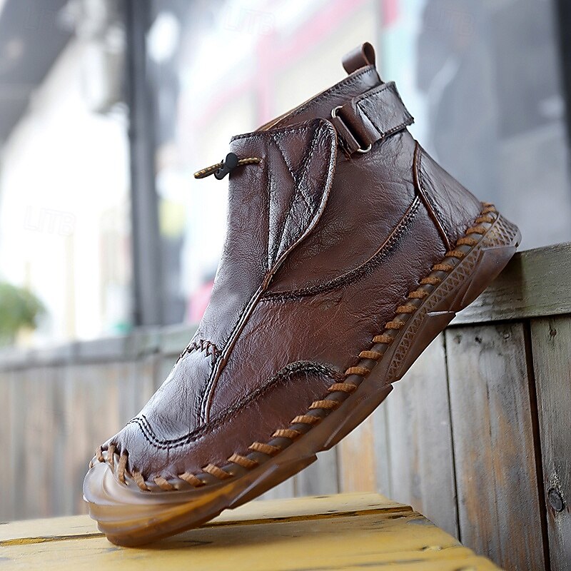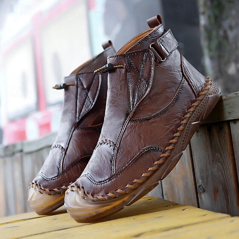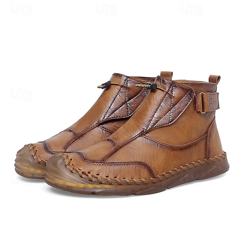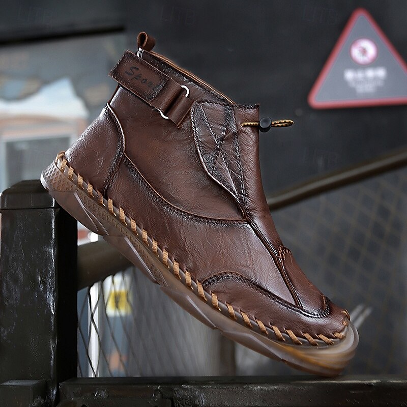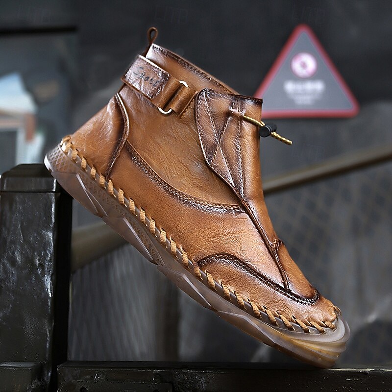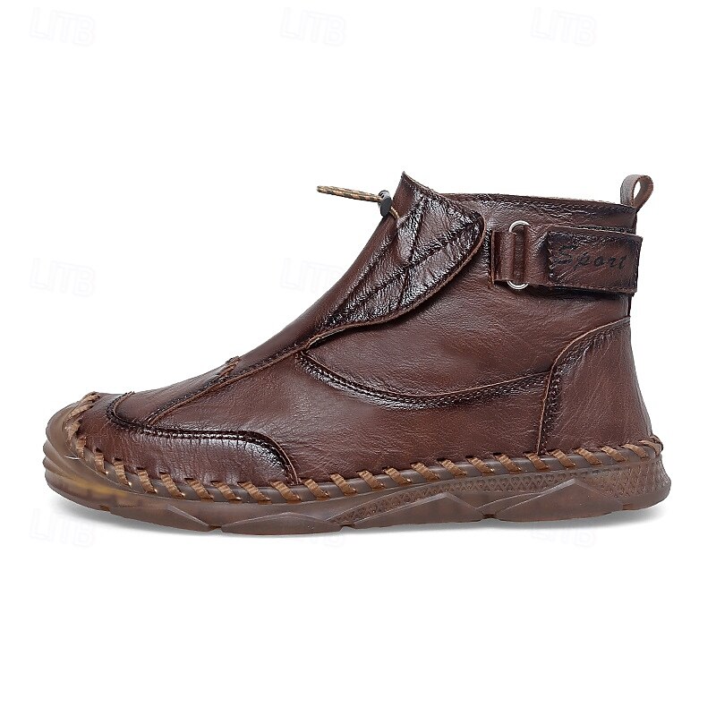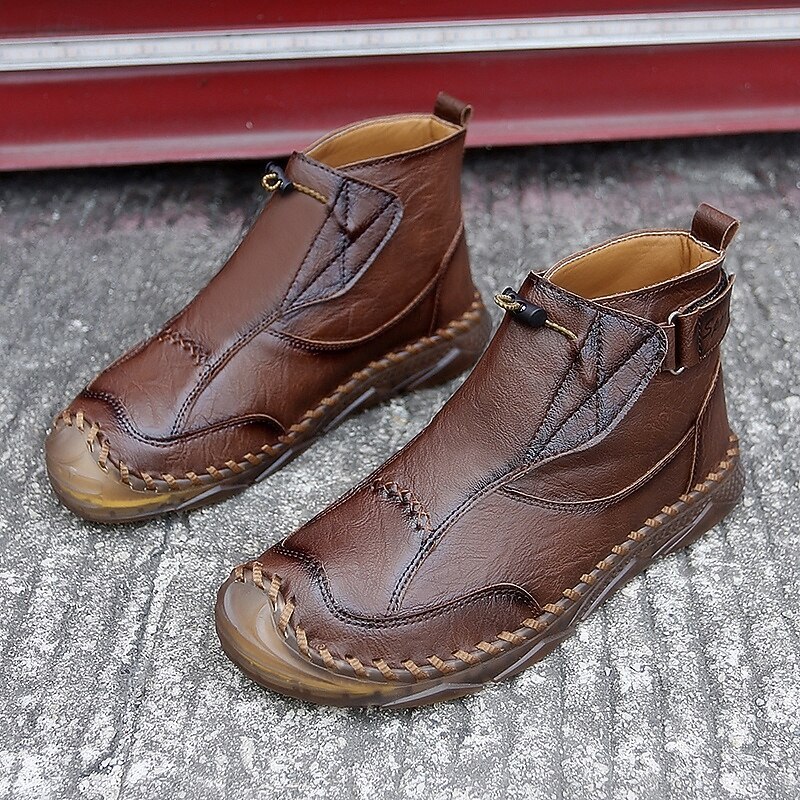 Men's Handmade Moccasin-Style Ankle Boots with Side Zipper – Vintage-Inspired Casual Shoes for Travel, Driving and Weekend Adventures 28