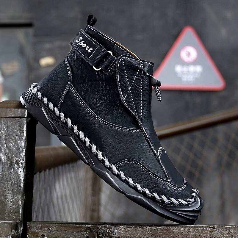 Men's Handmade Moccasin-Style Ankle Boots with Side Zipper – Vintage-Inspired Casual Shoes for Travel, Driving and Weekend Adventures 1