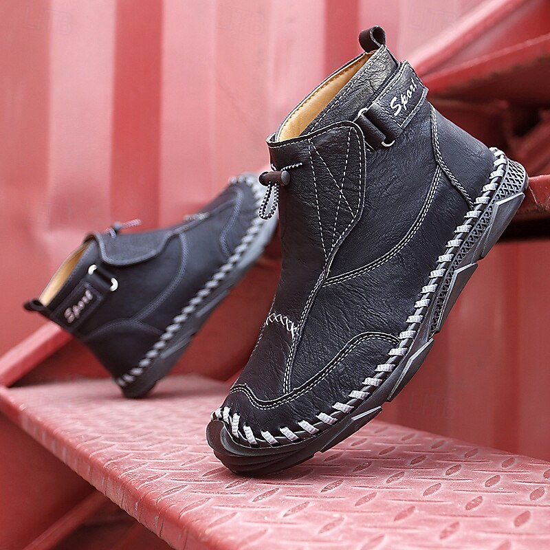 Men's Handmade Moccasin-Style Ankle Boots with Side Zipper – Vintage-Inspired Casual Shoes for Travel, Driving and Weekend Adventures 25