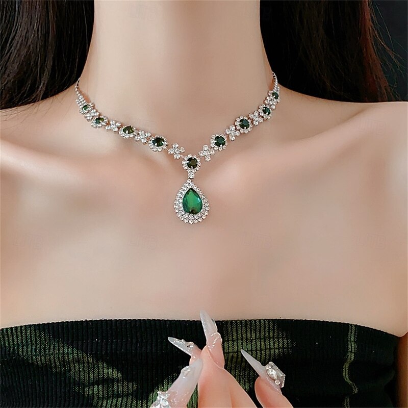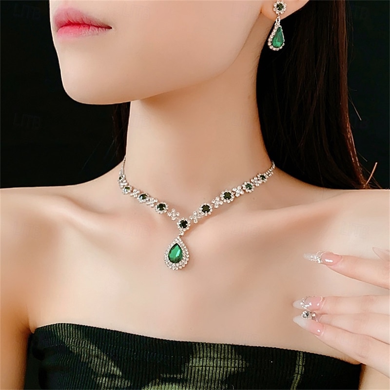 More information about Jewelry Set Two-piece Suit Black Cubic Zirconia Chrome Earrings Necklace Women's Elegant Vintage Fashion Vintage Style Classic Jewelry Set For Wedding Party Valentine's Day