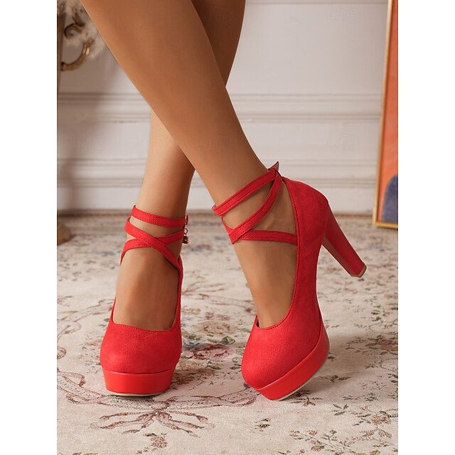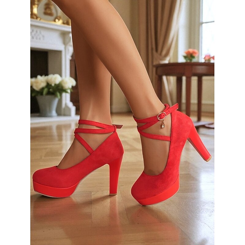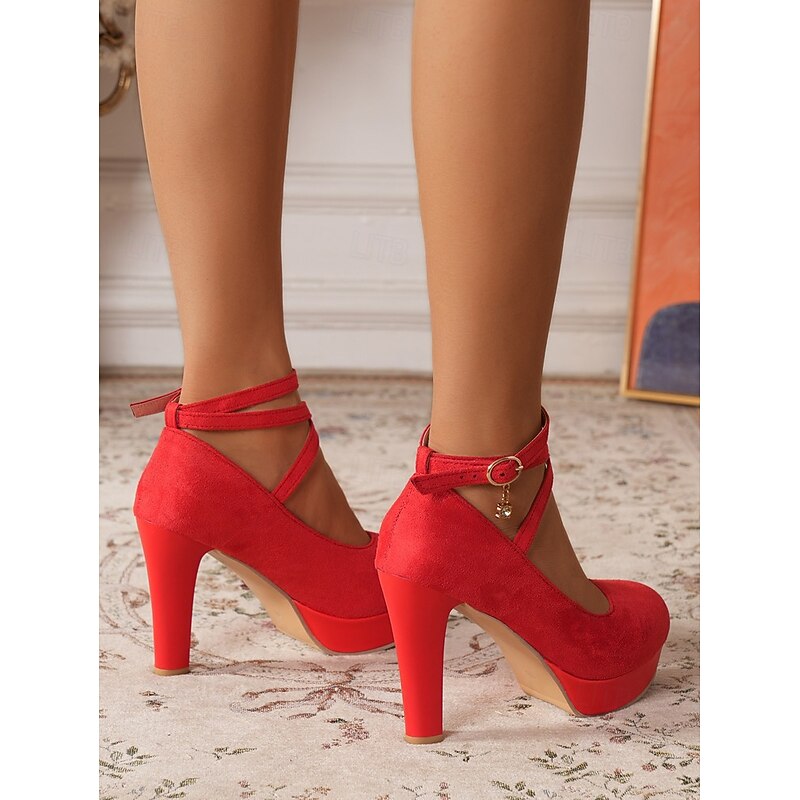 More information about Women's 1950s Black Suede Platform Pumps with Ankle Strap and Crystal Charm – Stylish High Heel Shoes for Evening Parties and Formal Occasions