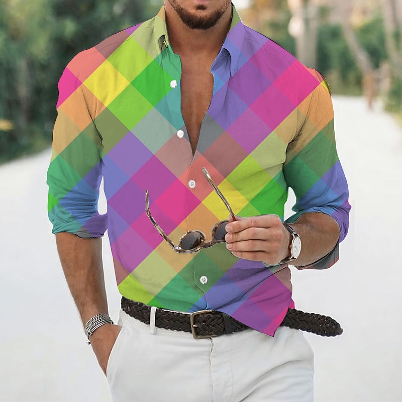 More information about Men's Geometric Pattern Geometry Shirt Button Up Shirt Long Sleeve Fashion Designer Casual Outdoor Casual Daily Fall & Winter Turndown Print Button-Down Yellow Light Green Royal Blue Blue Purple