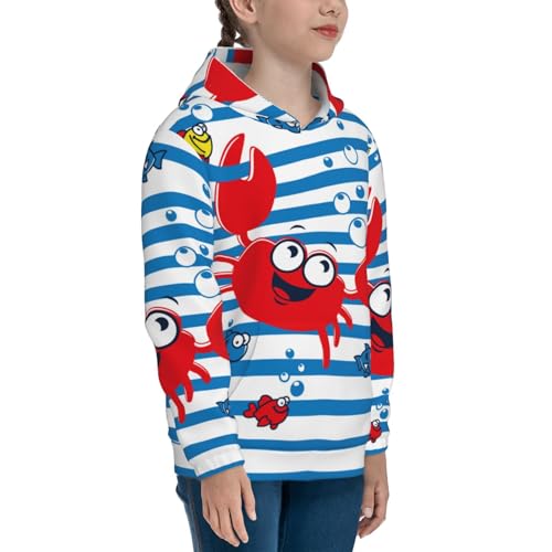 Red Funny Crab on Blue Stripe Kid Hoodies Boys Sweatshirts Girls Pullover with Pocket 7