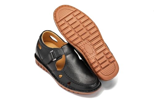 More information about CALTO Men's Invisible Height Increasing Elevator Shoes - Black Premium Leather Lightweight Casual Fisherman Sandals - 2.8 Inches Taller - K0751 - Size 7.5 D(M) US