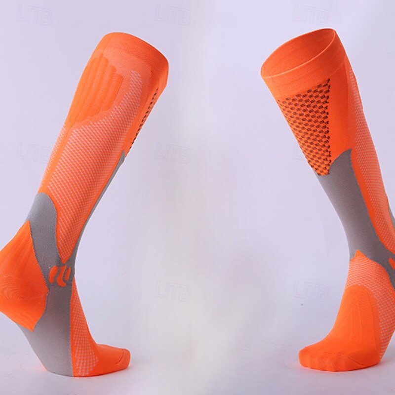 More information about 1 Pair Women's Compression Socks Hiking Socks Running Socks Ski Socks Sports Socks Breathable Anti Blister Compression Sweat-Wicking Outdoor Over The Calf Patchwork Nylon Black White Orange for Ski