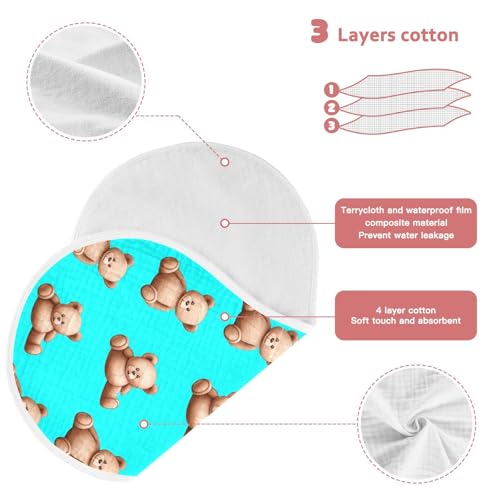 Cartoon Teddy Bear Baby Burp Cloths Cotton Washcloths Absorbent Soft Burping Rags for Baby Girl Boy Muslin Burp Cloths 2 Pack 4