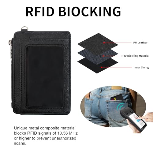 Small Wallets Woman Leather Credit Card Holder Slim Minimalist Front Pocket RFID Blocking Wallet for Women with Zipper Coin Purse(Black) 4